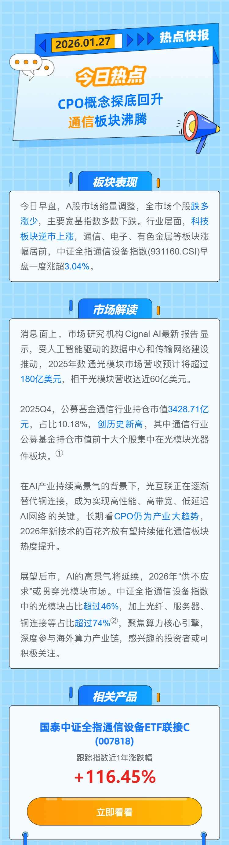 【热点快报】CPO概念探底回升 通信板块沸腾