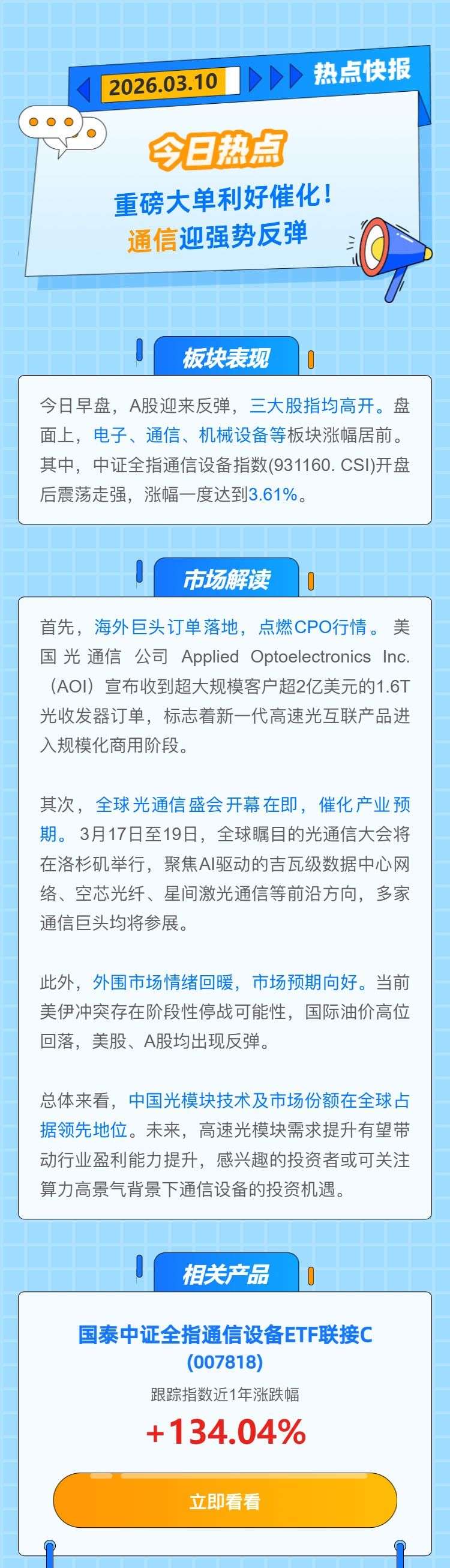 【热点快报】重磅大单利好催化!通信迎强势反弹