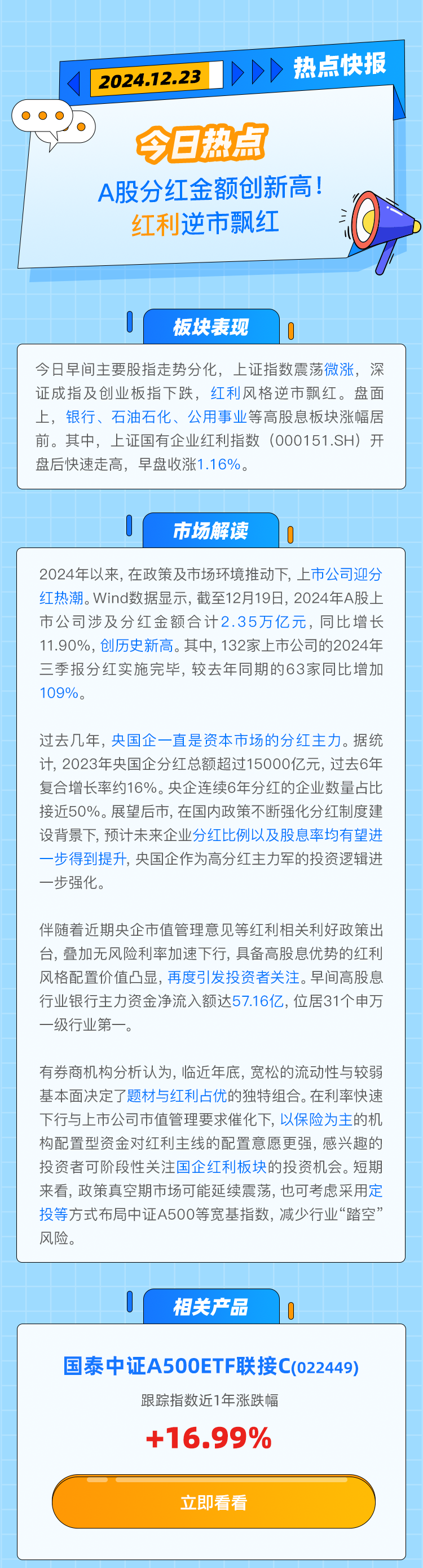 【热点快报】A股分红金额创新高!红利逆市飘红