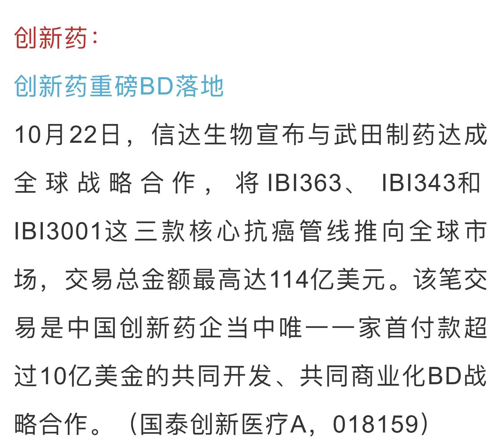 【国泰早安 10/23】创新药重磅BD落地