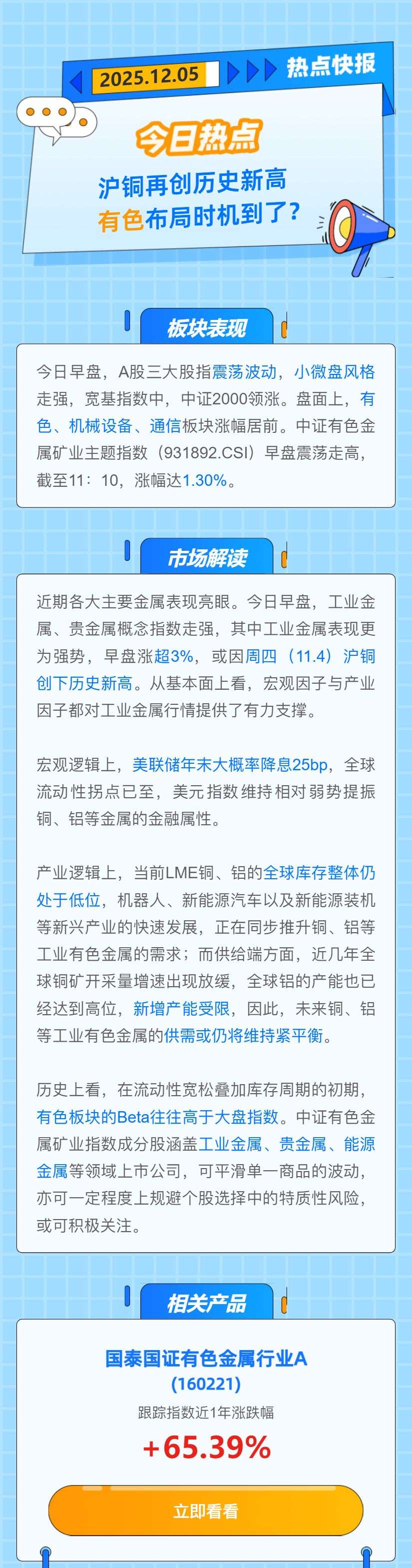 【热点快报】沪铜再创历史新高 有色布局时机到了?
