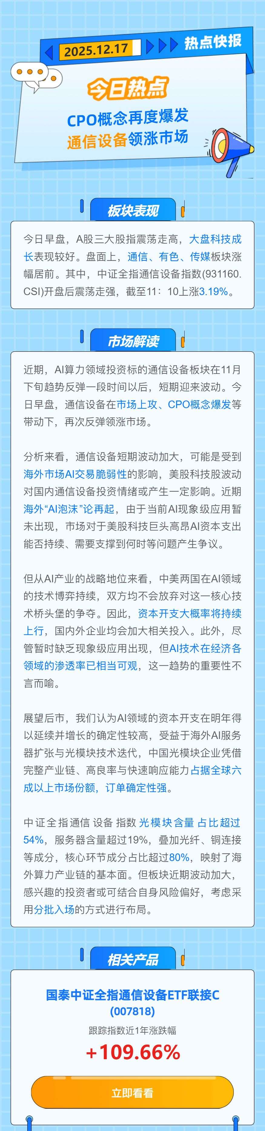 【热点快报】CPO概念再度爆发 通信设备领涨市场
