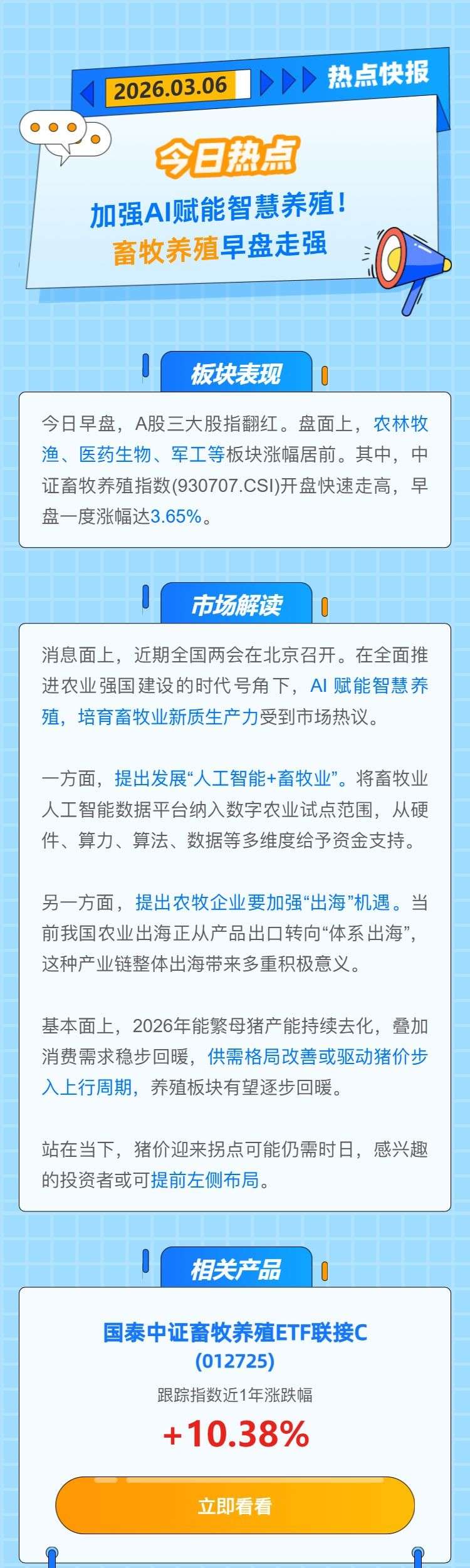 【热点快报】加强AI赋能智慧养殖! 畜牧养殖早盘走强